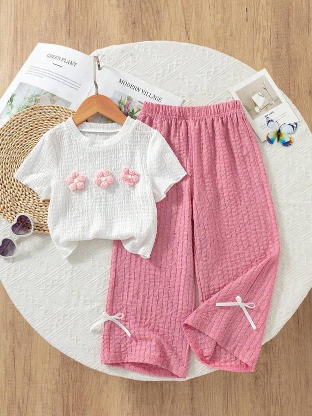 • Charming Design: White textured top with cute 3D flower embellishments.