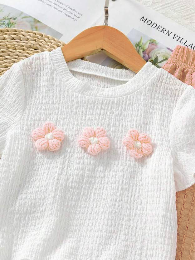 • Charming Design: White textured top with cute 3D flower embellishments.