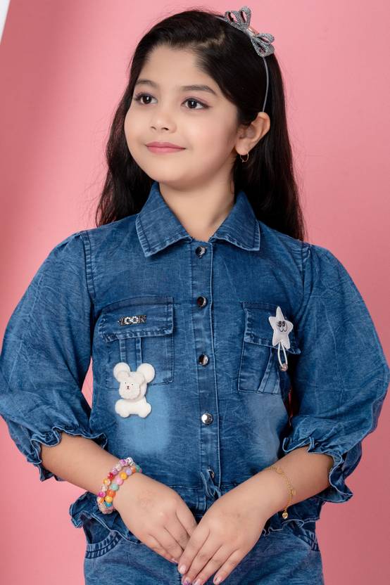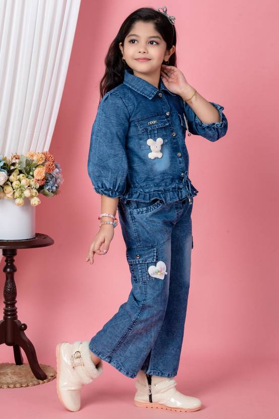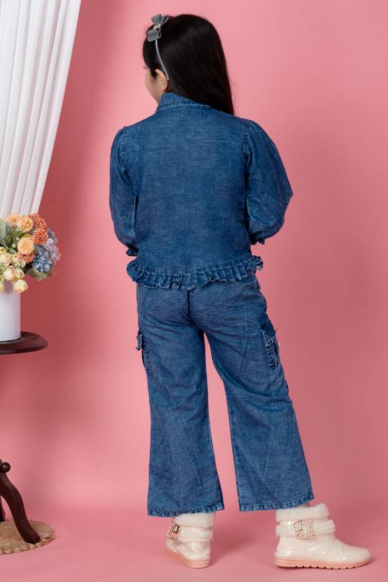 Whether she is heading to a birthday party, a family gathering, or just a day out at the mall, this denim set ensures she stands out. Pair it with white sneakers or boots (as seen in the image) for the ultimate "cool girl" look!